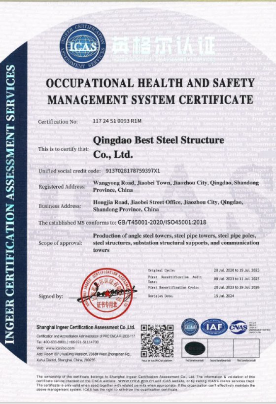 OCCUPATIONAL HEALTH AND SAFETYMANAGEMENT SYSTEM CERTIFICATE